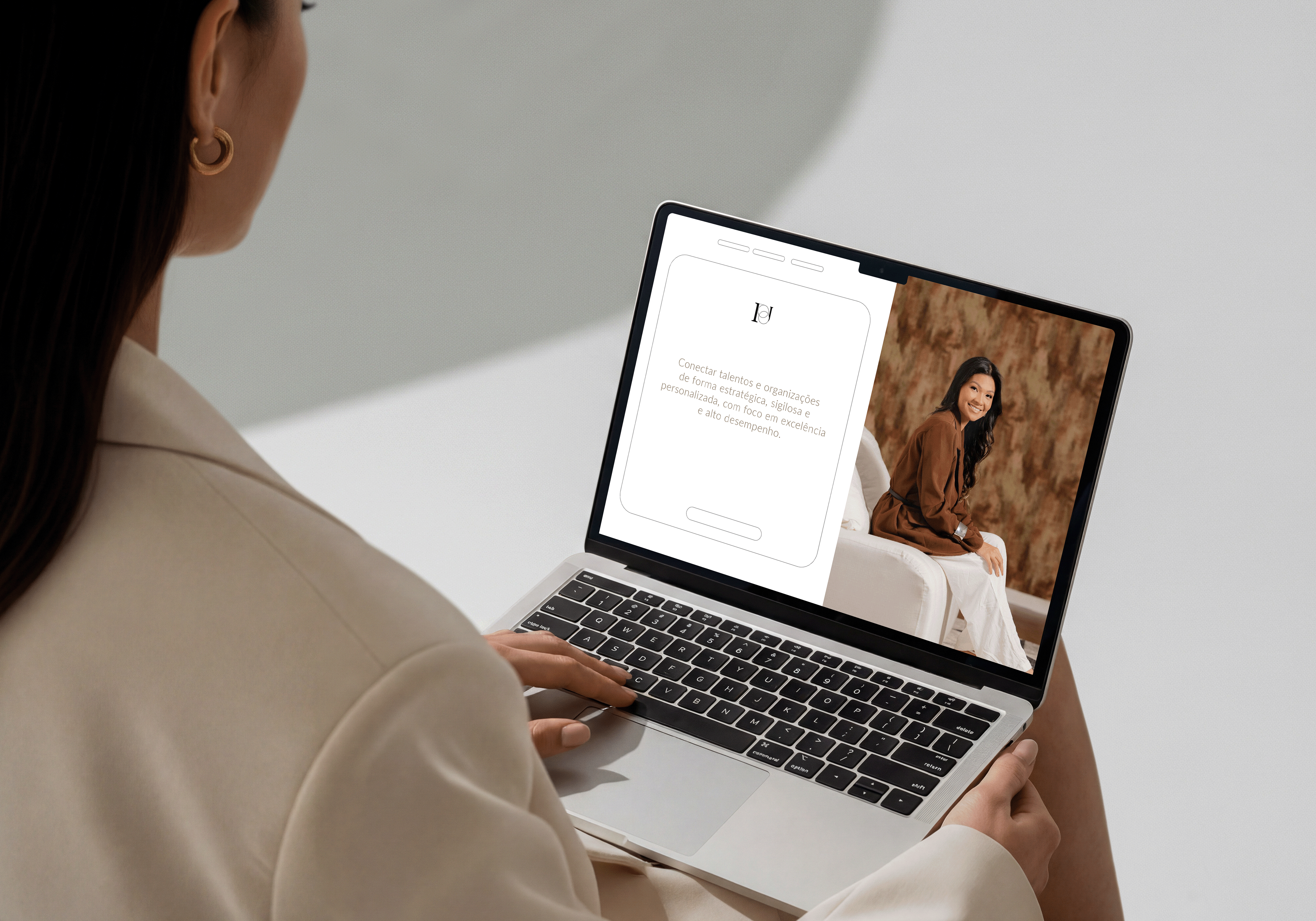 The symbol embodies connection, network, precision, and intelligence. The brand is defined by the mirroring of two “P” letters, subtly representing the meeting point between Pamela Pessoa and what drives her purpose: people, talent, companies, and clients, all connected through a single strategic essence.