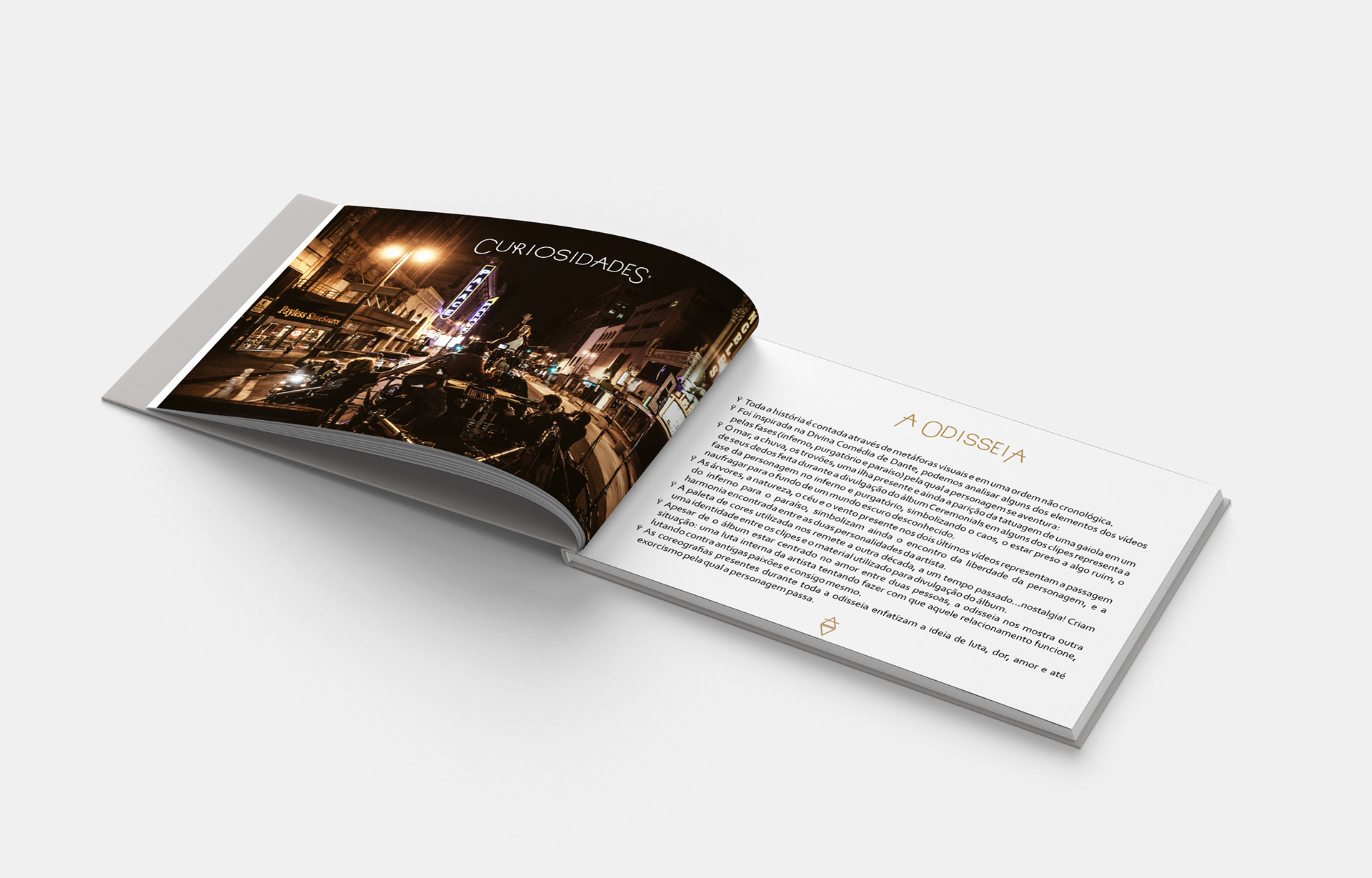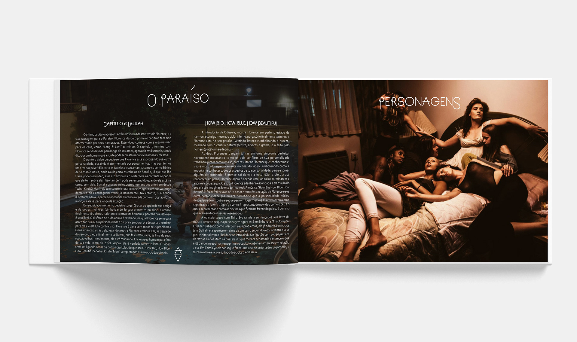The Odyssey é parte visual do álbum How Big How Blue How Beautiful da banda inglesa Florence and the Machine, nesse projeto da matéria de Semiótica, o objetivo central era analisar todos os seus conceitos em primeiridade, secundidade e terceiridade distribuindo-os em um sketchbook que deveria ser impresso. Utilizando elementos e símbolos retirados do próprio design do trabalho da banda, criei este material minimalista e intimista de 18 páginas e uma slipcase.